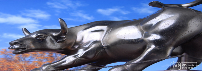 华尔街的铜牛雕像一直是美国资本主义最为重要的象征之一.也是外来游客必到的景点之一.这座铜牛塑像是由意大利艺术家狄摩迪卡设计的.铜牛身长近5米.重达6300公斤.无数前来观光的游客.都愿与铜牛合影留念.并以抚摸铜牛的牛角来祈求好运. 狄摩迪卡是在1987年纽约股市崩盘之后.有了创作的灵感.他说:“当我看到有人失去了一切.我感到非常难过.于是我开始为年轻的美国人创作一件美丽的艺术品.”为了筹资.他卖掉了家乡西西里祖传农场的一部分.总共筹得资金36万美元. 1989年的一个午夜.他在纽约证券交易所外将这座后来举世闻名的铜牛塑像竖立起来.宣称它是“美国人力量与勇气”的象征.由于狄摩迪卡无法取得许可.数日之后.铜牛于1989年12月20日被迁移到几条街之外的鲍林格林公园现址.