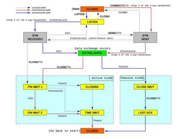 通过这三步就完成了“三次握手”步骤,发送端就可以确定发出的消息是否已经被成功接受,客户端和服务器端就建立了连接,可以传送数据了。