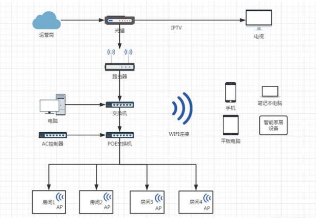 无线网在家庭网络环境中的地位是最高的,几乎所有的终端设备都需要用到无线网。手机、平板、笔记本电脑、智能家居、网络摄像头。所以,无线网的稳定性是重中之重。一般来说,一个路由器无法满足大面积的无线覆盖,这时候就要用到AP设备了。