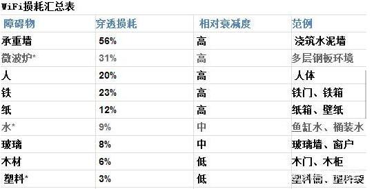 无线路由器的周围尽量避免下图中强损耗的障碍物,同时要远离大功率家用电器,例如微波炉、电冰箱等,其次,蓝牙耳机、蓝牙键盘等对无线均有干扰。另外可以在路由器的设备管理中,查看当前的在网用户,对于非法接入用户,可以通过禁用,将其拉入设备黑名单。因为蹭网的对你的网络可能是毁灭性的增加延迟。