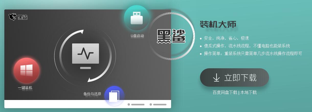 在线重装的软件也比较多,可以自行百度搜寻,这里以黑鲨系统装机为例。