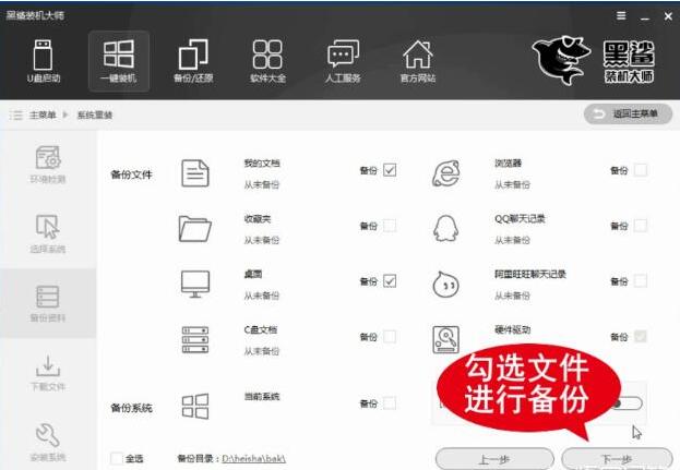 5.勾选需要备份的文件,单击“下一步”按钮