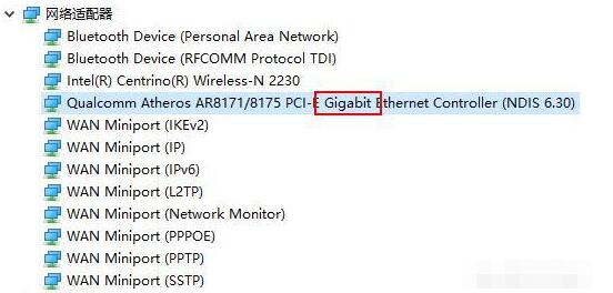 7、电脑网卡。如下图所示,Gigabit Ethernet表示千兆网。