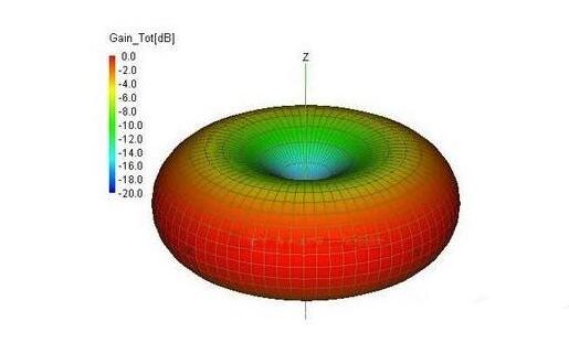 以下图的天线功率为例,无线信号以天线为中心,呈圆弧状水平向四周传输。可以通过场强测试,天线中心处属于信号覆盖薄弱区,若四楼刚好位于中心点位处,信号的覆盖效果会很差,为了更好的覆盖四楼点位,建议将天线水平于地面放置,利用外环最强的信号区域覆盖,若二楼也有无线需求,一根垂直,一根水平即可。