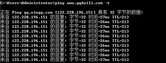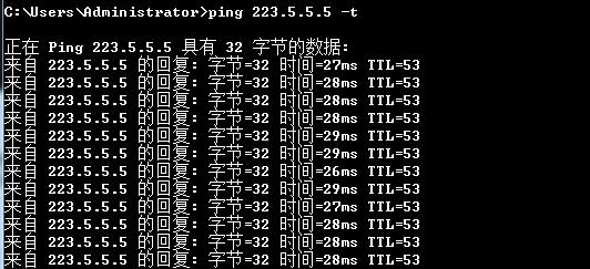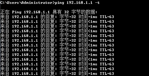 在开始、运行中输入√眒d”命令,进入DOS窗口,在DOS窗口通过“ping 地址 -t”的命令进行测试,-t参数表示持续测试。