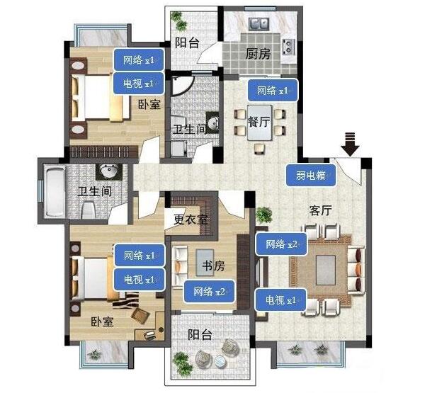 尽量将路由器放置在书房和卧室之间的中心位置,避免信号出现覆盖不均的现象,同时,调整无线路由器的天线位置,天线因无线信号的传输特点,需要垂直路由器放置。