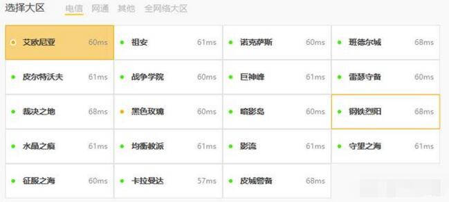 仍然以游戏为例,电信服务器占有巨大部分的优势,但并不是所有服务器都位于电信机房。在游戏服务器的选择问题上,既然使用电信网络,就不要选择网通或其他线路的服务器,避免因为跨网服务器选择,导致网络延时较高,影响游戏体验。