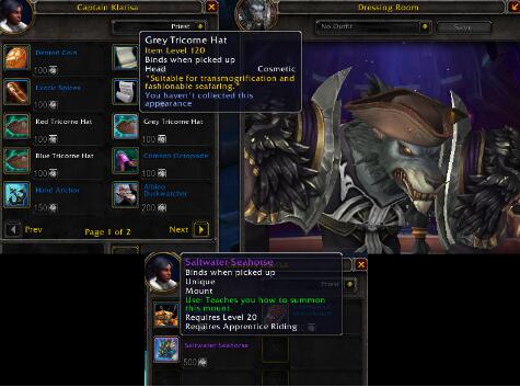 但是在8.1里情况发生了变化。在8.1版本中,海员达布隆币将能够兑换新海盗帽、宠物、玩具甚至坐骑。从截图上看,一只小宠物就需要100至200个达布隆币,而坐骑更是高达500个币,想要兑换完所有的玩具及坐骑等总共需要1950个海员达布隆币。