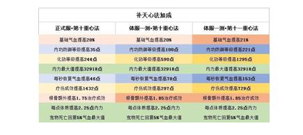 体服十一重心法属性加成与正式服十重属性加成数据图