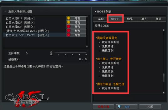 在《新惊天动地》新开放的“泯灭纪元”资料片中,玩家游戏UI的副本进入界面新增了“BOSS”一栏,玩家可以通过此页面查看当前BOSS的属性特点。玩家在击杀BOSS时,可针对页面内容提示的BOSS属性,采取不同的击杀策略。