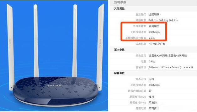 下图显示了某品牌450M无线路由器的参数,注意标注处。