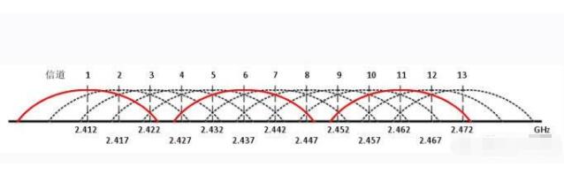 市场上的150M/300M/450M的无线路由器都是属于只支持2.4G的802.11g/n的无线路由器,工作频率为2.4G的非授权频谱。路由器的工作频段是可以自己指定的,但是也可能是路由器自己选择的。2.4G wifi的工作频率分为13个信道,下图给出了每个信道使用的频率。xunji190101