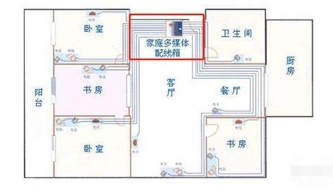 运营商的主干光缆接入到用户的弱电箱,将弱电箱作为整个房间综合布线的汇聚点;每个房间分别通过墙插网线和弱电箱进行连接,从而实现全房间的网络覆盖。xunji190101