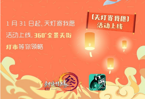 欢度春节之际,江湖Daily为侠士准备了乐趣无穷的新春活动等你来参与,首个打通APP与《剑网3》的“天灯寄我愿”活动将于明日开放体验,侠士可杂甈P上为友人送上自己的新春祝福,这份祝福将会在游戏中传递给其他侠士!与此同时,《剑网3》成都年夜饭已于昨日圆满结束,就让我们一起来回顾一下吧!xunji190101